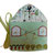 Bauernhaus - kleines Stoffbuch zum aufklappen, wunderschön bestickt. Vorne ist das Bauernhaus mit Fenstern und Türe zu sehen, an der Hauswand rankt der Hopfen,