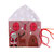 Dach aus rotem Baumwollstoff, weiß getupft. Die Tasche innen ist auch aus rotem Baumwollstoff mit weißen Tupfen, das Verschlussband aus rotem Chiffonband. Grösse ganz aufgeklappt: 17,5x29cm. OHNE INHALT.