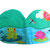 einer Robbe. Aus Leinenstoff stonewashed, lindgrün. Die Applikationen sind aus Baumwollstoff. Die Tasche innen ist aus 100 % Baumwollstoff blau-weiß getupft, das Verschlussband aus